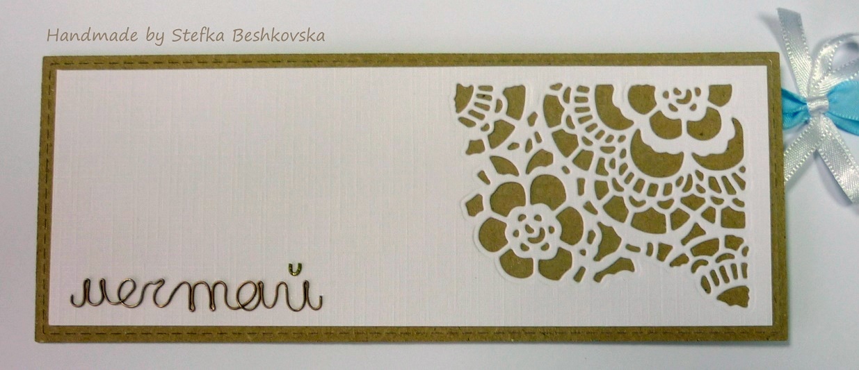 Напоследък правих 2 сватбени картички, предстоят ми още 3-4... но се оказа че тази съм пропуснала да покажа. Поправям се!